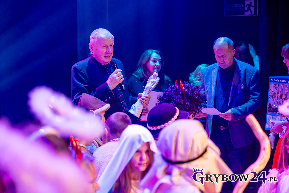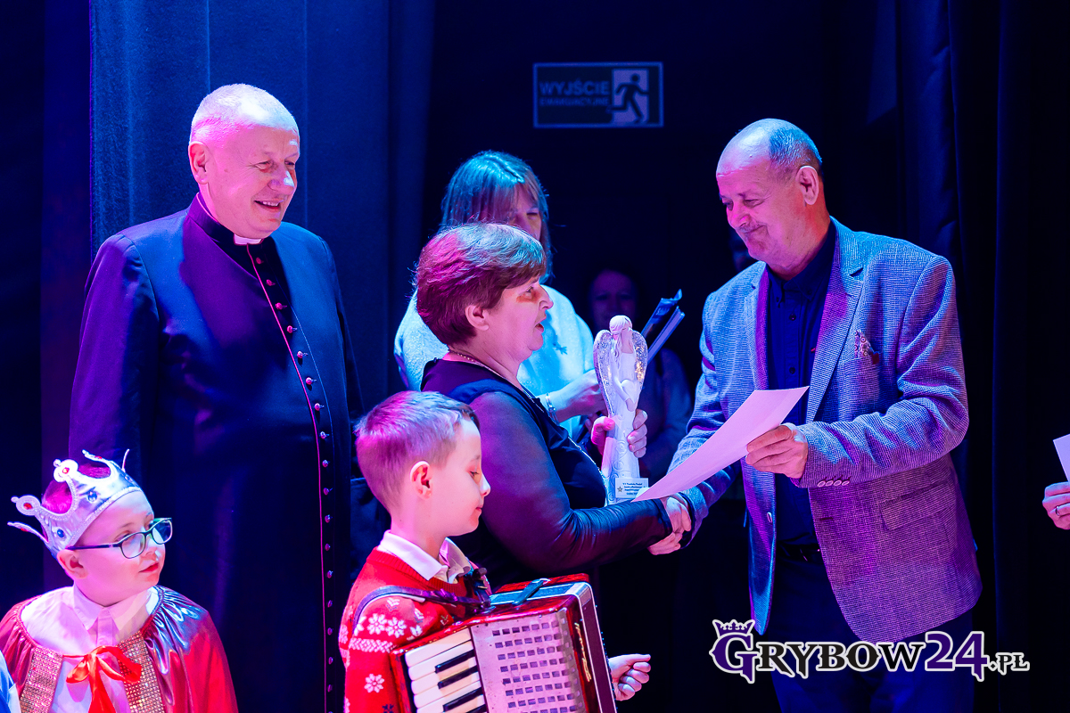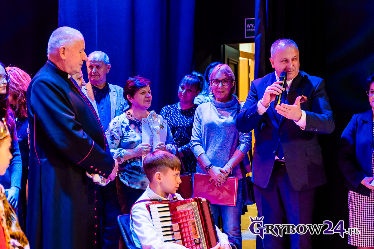 – Dziękuję Panu Burmistrzowi za to, że pomaga nam przez całą swoją kadencję. Dziękuję Pani Dyrektor (Miejskiego Centrum Kultury Czytelnictwa i Edukacji w Grybowie Anecie Galei – przyp. red.) za duży wkład w organizację przeglądu. Jeżeli nie mielibyśmy tej sali, nagłośnienia, nie byłoby ciepło, trudno byłoby zorganizować jasełka – powiedziała nauczycielka SP nr 1 w Grybowie Ewa Kornakiewicz przypominając, że wielki wkład w to wydarzenie miał Ks. dr Jacek Soprych, Rektor Wyższego Seminarium Duchownego w Tarnowie.