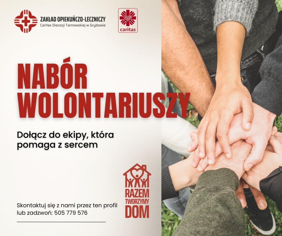 „Bezinteresowność, która czyni człowieka wolnym, można osiągnąć tylko przez cierpliwe, codzienne, małe rezygnacje z samego siebie. Jedynie w tej codziennej pasji, która pozwala człowiekowi zobaczyć, jak bardzo wiąże go jego «Ja», człowiek krok po kroku się otwiera. Widzi tylko tyle, ile przeżył i wycierpiał”. Wolontariat to szlachetna forma pomocy. Czasem wystarczy poświęcić tylko chwilę, by na czyjejś twarzy zagościł uśmiech. Jeśli czujecie, że to coś dla was, zgłoście się do Zakładu Opiekuńczo-Leczniczego w Grybowie.