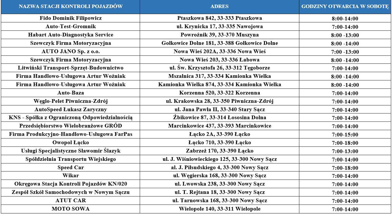 - Auto-Baza: Korzenna 520, 33-322 Korzenna (w godzinach 7–14).