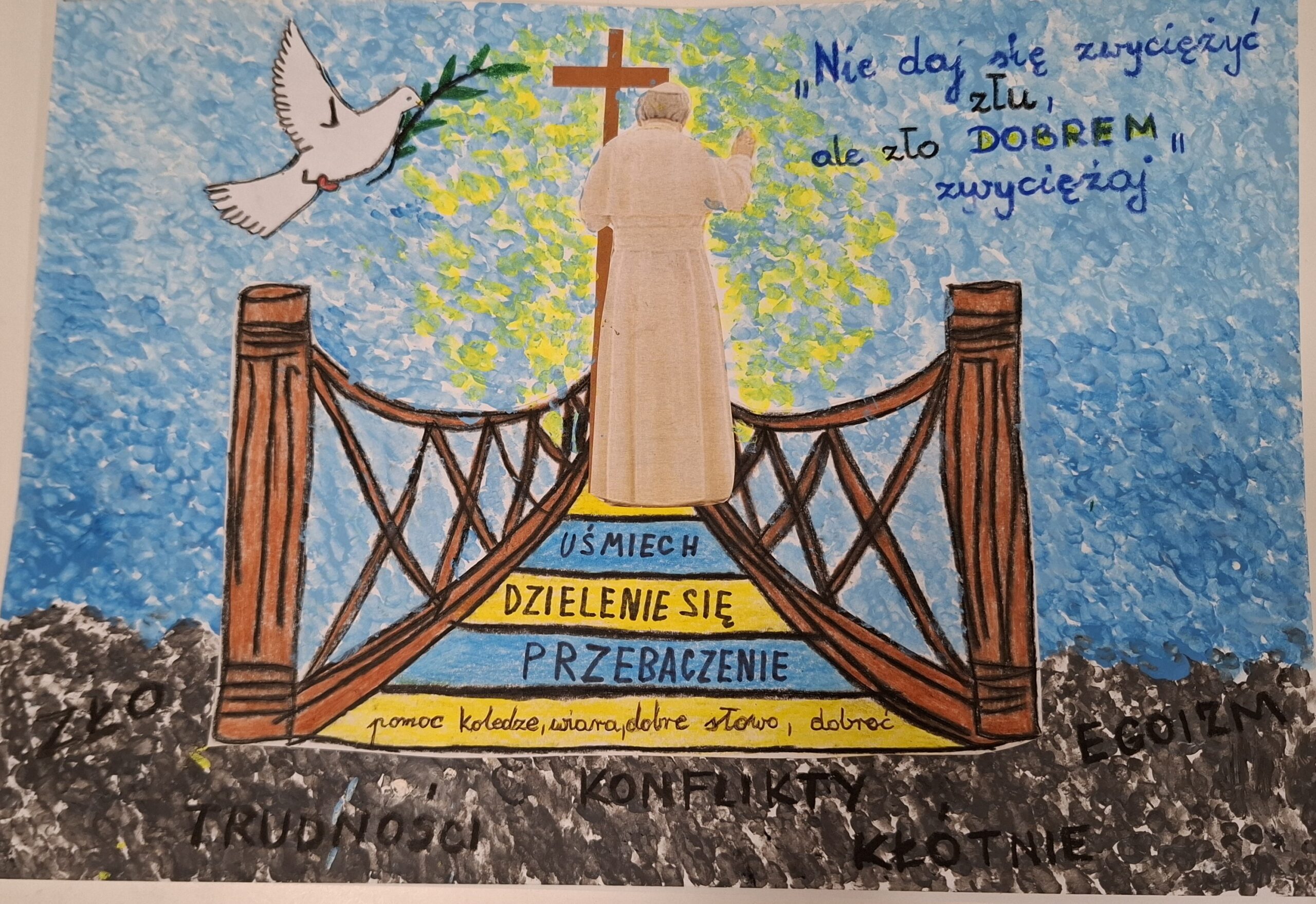 Miejskie Centrum Kultury, Czytelnictwa i Edukacji w Grybowie zorganizowało konkurs plastyczny „Nie daj się zwyciężać złu, ale zło dobrem zwyciężaj”. To przedsięwzięcie, którego celem było uczczenie pamięci Papieża Polaka. Młodzi mieszkańcy miasta i gminy licznie odpowiedzieli na zaproszenie do udziału, bo wpłynęło 52 prace.