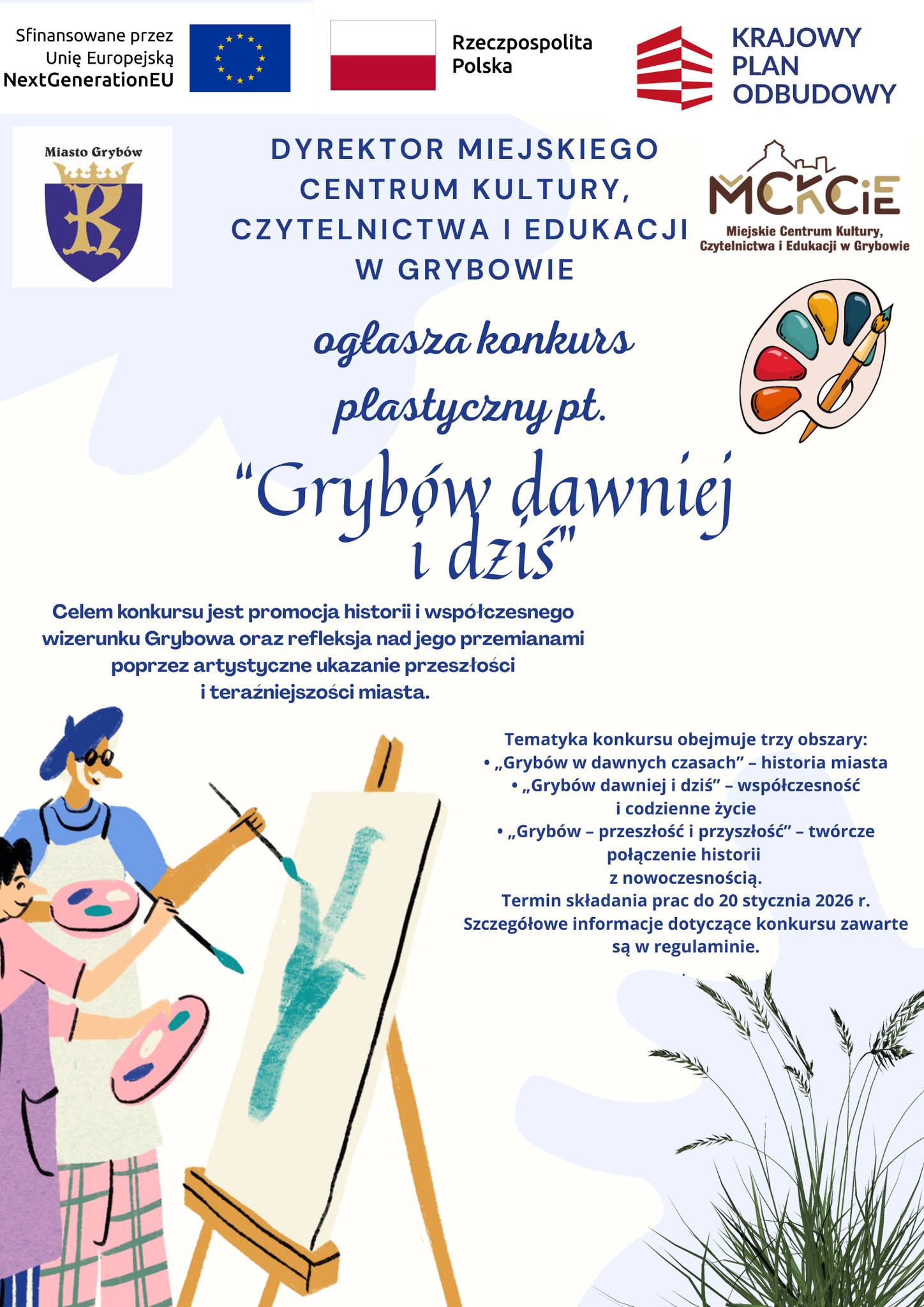 Miejskie Centrum Kultury, Czytelnictwa i Edukacji w Grybowie zaprasza mieszkańców do udziału w konkursie plastycznym „Grybów dawniej i dziś”. To propozycja dla wszystkich – dzieci, młodzieży i dorosłych, którzy chcą w artystyczny sposób opowiedzieć historię miasta oraz pokazać jego współczesne oblicze.