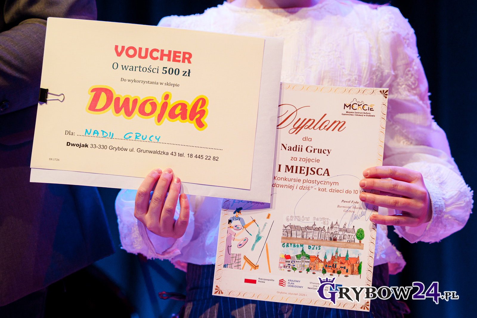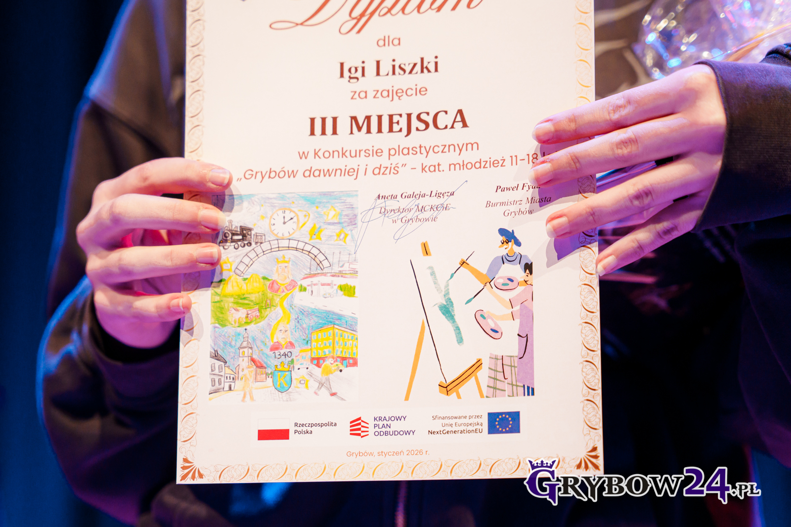 W dniu 25 stycznia miało miejsce uroczyste wręczenie nagród laureatom konkursu plastycznego pn. „Grybów dawniej i dziś”. Konkurs zrealizowano w ramach przedsięwzięcia „Rozstaje Kultur – kulturalna mozaika inspirowana jubileuszem 685-lecia lokacji Miasta Grybów”. Było to jedno z kilku działań, na które Miejskie Centrum Kultury, Czytelnictwa i Edukacji w Grybowie otrzymało dofinansowanie.
