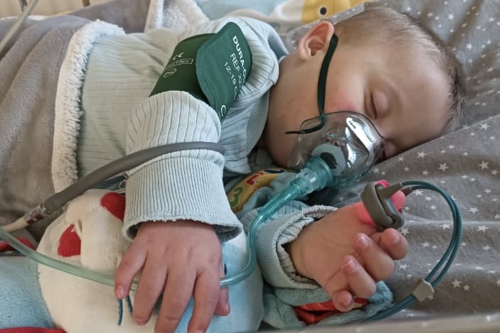 Nikodem przyszedł na świat z rzadką i wciąż nie do końca poznaną chorobą – cholestazą o nieustającej etiologii. To jednak dopiero początek długiej listy wyzwań zdrowotnych. Chłopiec cierpi także na wadę serca (anomalię Ebsteina – niedomykalność zastawki trójdzielnej), niedoczynność tarczycy, wiotkość krtani, mały ADS, a także żylaki przełyku III stopnia.