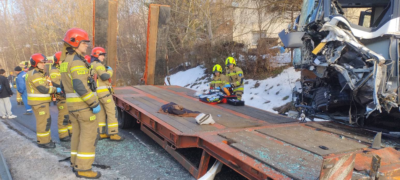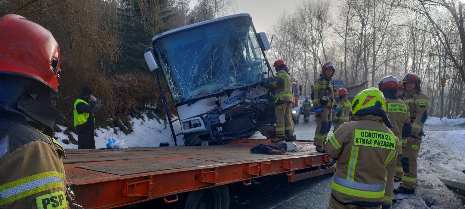 Pracowity dzień dla służb z powiatu nowosądeckiego. W Krużlowej Wyżnej doszło do zderzenia autobusu z samochodem ciężarowym. Na miejscu udzielono pomocy medycznej 11 osobom, a jedna została przewieziona do szpitala. Odcinek drogi powiatowej na trasie Krużlowa–Mogilno jest wciąż zablokowany.