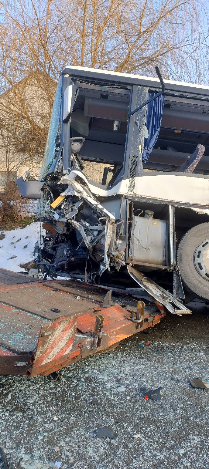 „Dzisiaj, tj. 27 stycznia br., ok. 8:50 w miejscowości Krużlowa Wyżna (gmina Grybów) na łuku drogi doszło do zdarzenia drogowego z udziałem autobusu kursowego marki Mercedes oraz samochodu ciężarowego marki Man z przyczepą (laweta). W wyniku tego zdarzenia doszło do uszkodzenia autobusu, który następnie zjechał do przydrożnego rowu. Autobusem podróżowało 9 osób, w tym 8 nastolatków w wieku od 10 do 17 lat i jedna osoba dorosła. Na miejscu korzystali oni z pomocy medycznej, doznali ogólnych potłuczeń, natomiast kierujący autobusem został przewieziony do szpitala na badania. Kierowca samochodu ciężarowego nie doznał obrażeń. Obecnie na miejscu zdarzenia, policjanci z Zespołu Wypadkowego Wydziału Ruchu Drogowego Komendy Miejskiej Policji w Nowym Sączu oraz biegły z zakresu ruchu drogowego wykonują czynności procesowe. Dokładne okoliczności i przyczyny tego zdarzenia są ustalane”.