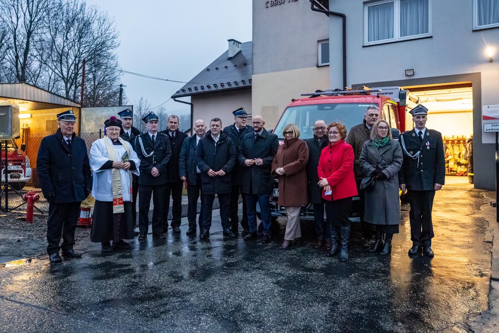 Podczas uroczystości obecni byli m.in. senator Rzeczypospolitej Polskiej Wiktor Durlak, posłanka na Sejm Rzeczypospolitej Polskiej Barbara Bartuś, starszy brygadier Sławomir Wojta – komendant Państwowej Straży Pożarnej w Nowym Sączu, brygadier Piotr Wysocki – komendant miejsko-gminnego oddziału Związku Ochotniczej Straży Pożarnej, przewodniczący Rady Powiatu Nowosądeckiego Marek Pławiak, a także przedstawiciele władz Powiatu Nowosądeckiego, Gminy Grybów, sąsiednich jednostek OSP i licznie zgromadzeni mieszkańcy.