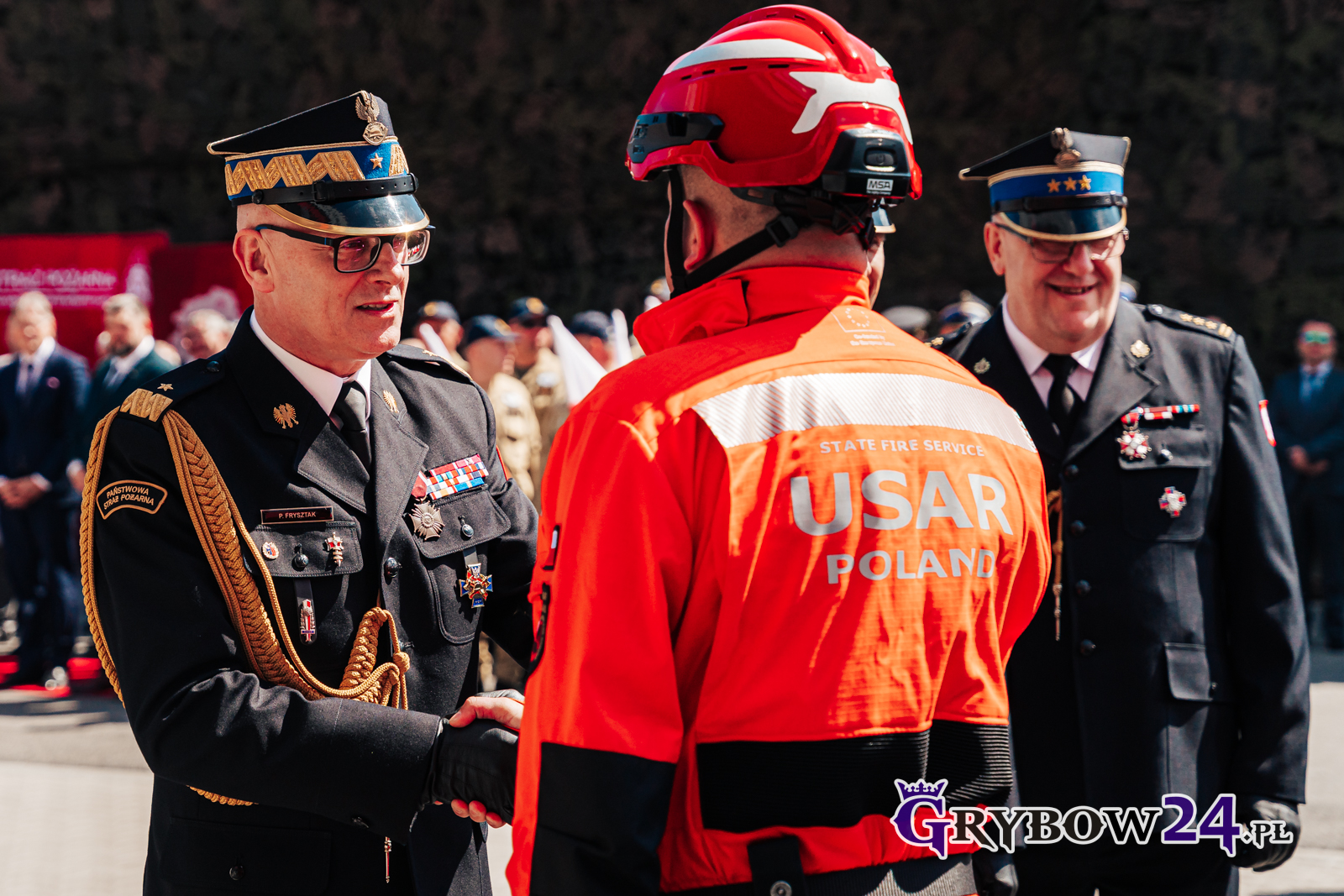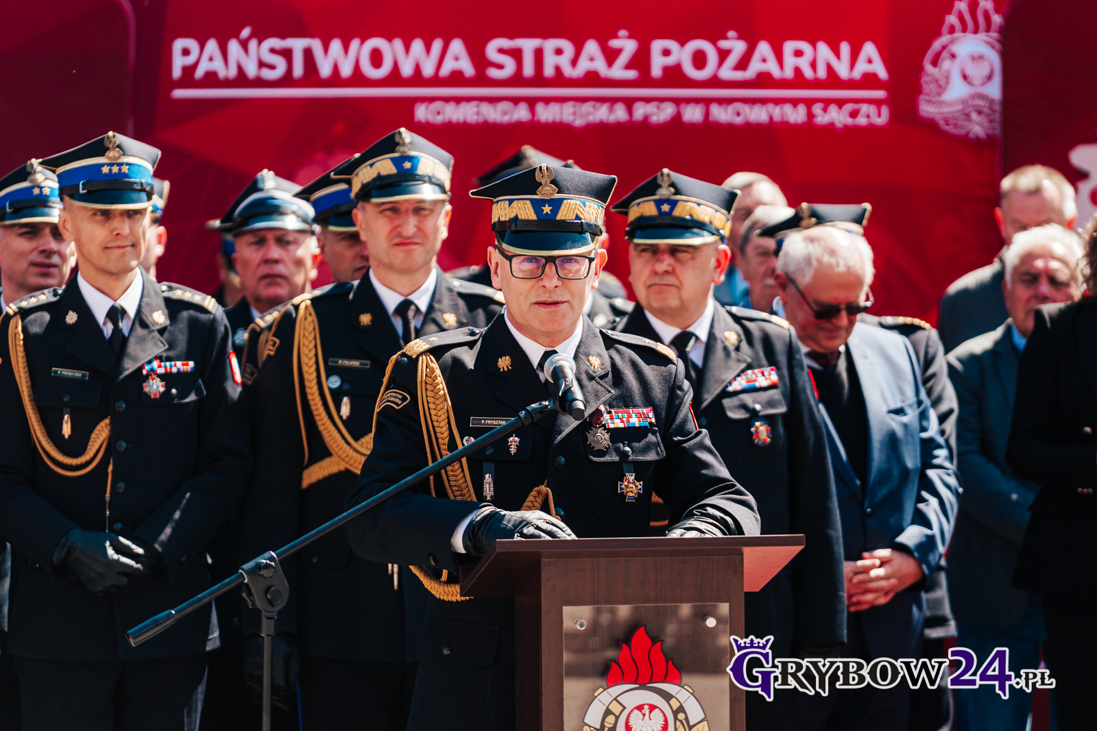 Podczas doniosłego wydarzenia 6 strażaków zostało uhonorowanych Odznaką „Zasłużony dla Ochrony Przeciwpożarowej”. Pojawiły się wszystkie stopnie – złoto, srebro i brąz. Serdeczne gratulacje! A zwieńczeniem uroczystości był występ Orkiestry Reprezentacyjnej Straży Granicznej z Nowego Sącza.